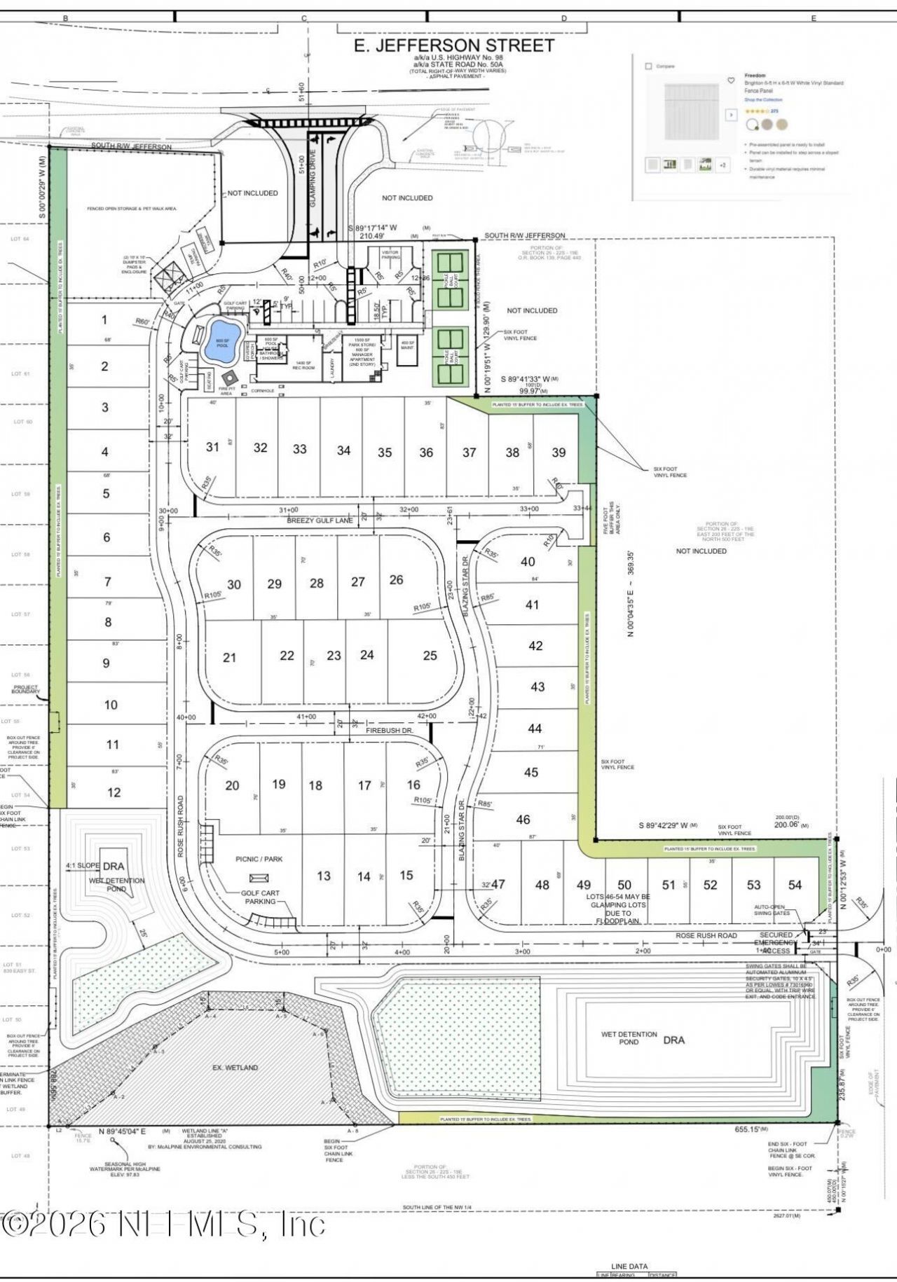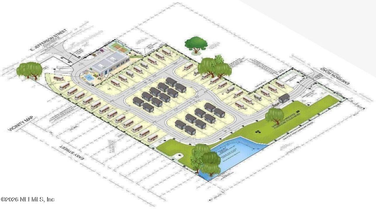 Located in Brooksville with city water and sewer access, this 9.40-acre property is zoned to PDP-RV (Planned Development Project-Recreational Vehicle). Situated on East Jefferson Street's south side and immediately west of Emerson Road, the parcel was annexed into the city in January 2021. It has a Comprehensive Plan Future Land Use designation of 'South Brooksville Planned Development District,' allowing for a non-residential Floor Area Ratio (FAR) of 0.30.The PDP-RV zoning permits the development of a recreational vehicle park featuring 54 RV lots, 1,500 sq. ft. of commercial space, a 1,500 sq. ft. manager's apartment, a 2,000 sq. ft. community center, a swimming pool, and ball courts.Currently, the property includes an 1,803 sq. ft. single-family home built in 1958 and two 748 sq. ft. duplexes constructed in 1963. RV Park is a prime investment opportunity, fully entitled and platted.